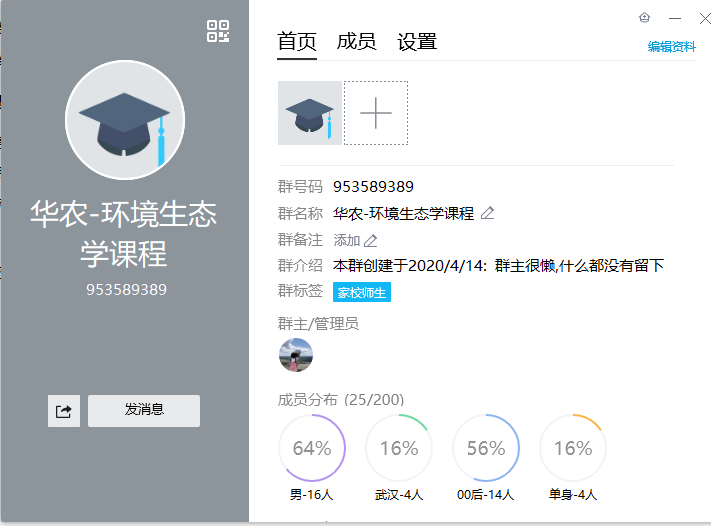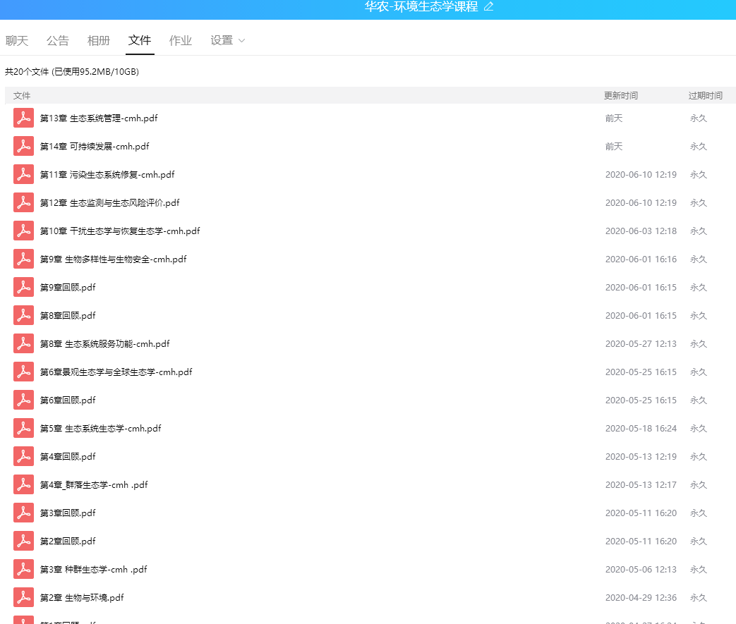 (3)平台选择。课程教学环节采用QQ平台,新建了环境生态学课程学习QQ群,通过QQ群分屏开展在线教学。在群内共享《环境生态学》课程的电子课件和相关资料,使学生在没有教材的情况下也能及时预习和复习课程内容。同时在QQ群中及时收集和反馈同学提出的问题。学生展示环节采用腾讯会议,学生选择环境生态学中感兴趣的主题,然后收集相关的资料制作成PPT,大家在腾讯会议上展示和互动比较方便。