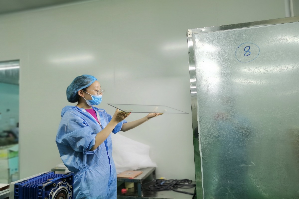 初到大德科技,刘嫒桦便跟随大德科技公司总经理一起参观了企业的两处车间,一处为钢化玻璃处理车间即无尘车间,一处为CNC车间负责钢化玻璃的切割。其中CNC车间也是当地的一处扶贫车间,当地会有家庭比较贫困的人员在这里工作,刘嫒桦也不经感叹:“原来扶贫不仅只是在农村会有,也会出现在工厂里。脱贫之花已经盛开出在中国大地了!”