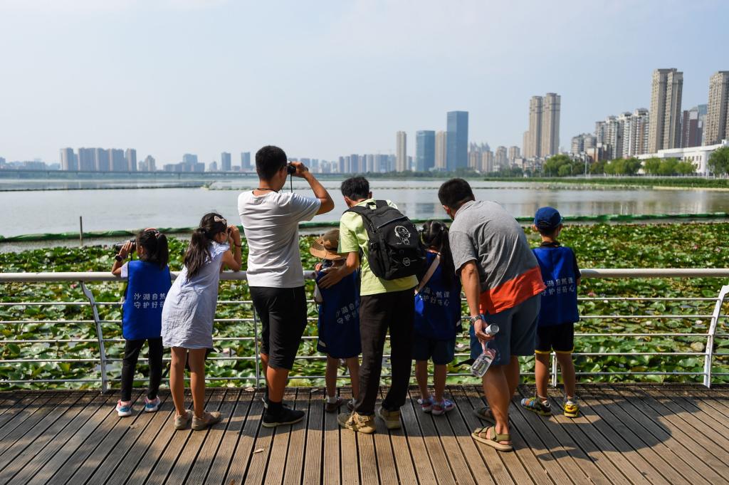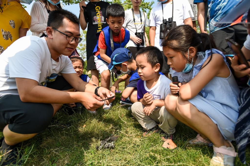 小朋友集体观鸟。记者许魏巍 摄