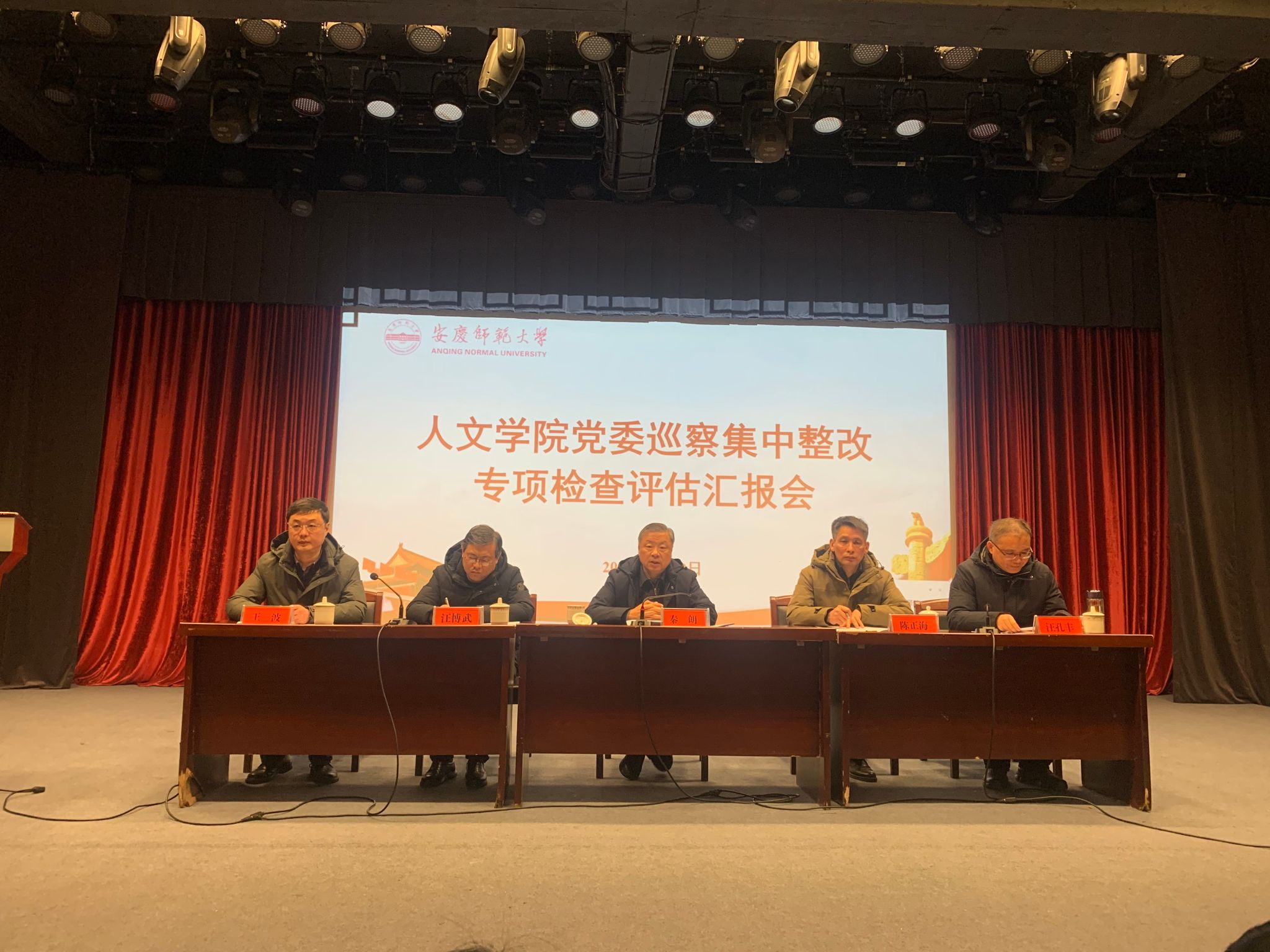 1月19日上午,Beat365中文官方网站党委巡察集中整改专项检查评估汇报会在菱湖校区图书馆报告厅举行。校党委常委、纪委书记、党委巡察工作领导小组副组长秦朗出席会议,校纪委办、党委巡察办主要负责人,专项检查组全体成员与Beat365中文官方网站班子成员、全体教师和学生代表参加会议。会议由Beat365中文官方网站院长汪孔丰主持。