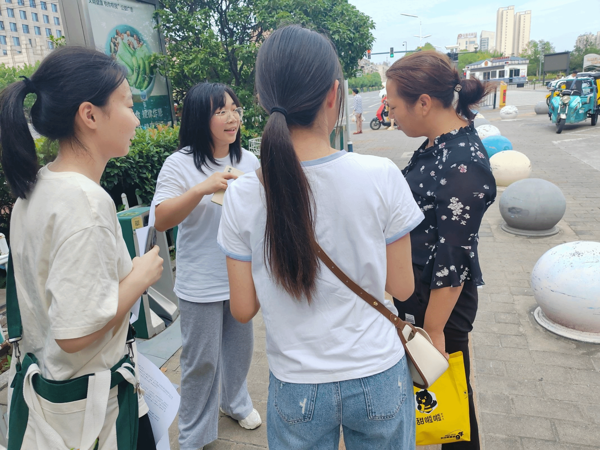 图为队员们分发推广普通话宣传稿