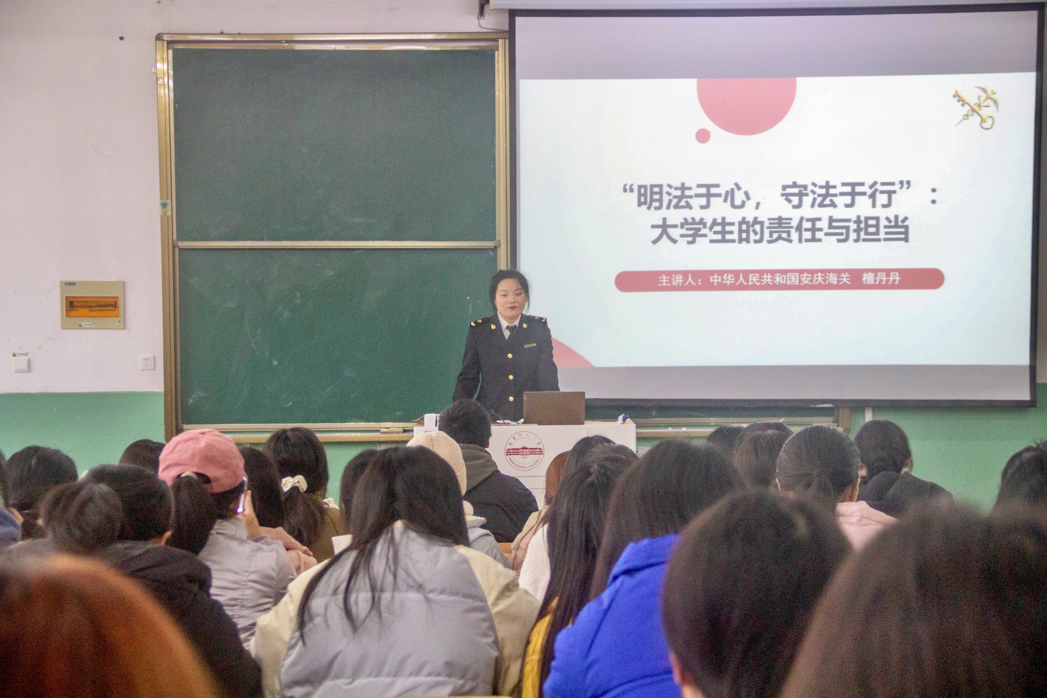12月4日下午,Beat365中文官方网站联合安庆海关开展“弘扬宪法精神,筑牢海关法治”主题讲座。本次讲座由安庆海关檀丹丹主讲。