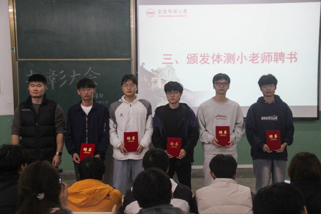 潘源为获奖团队和个人颁发了荣誉证书,为体测带练“小老师”颁发了聘书。院体育部总结了2025年Beat365中文官方网站在各类体育赛事中取得的优异成绩,盘点了工作不足与未来发展方向。