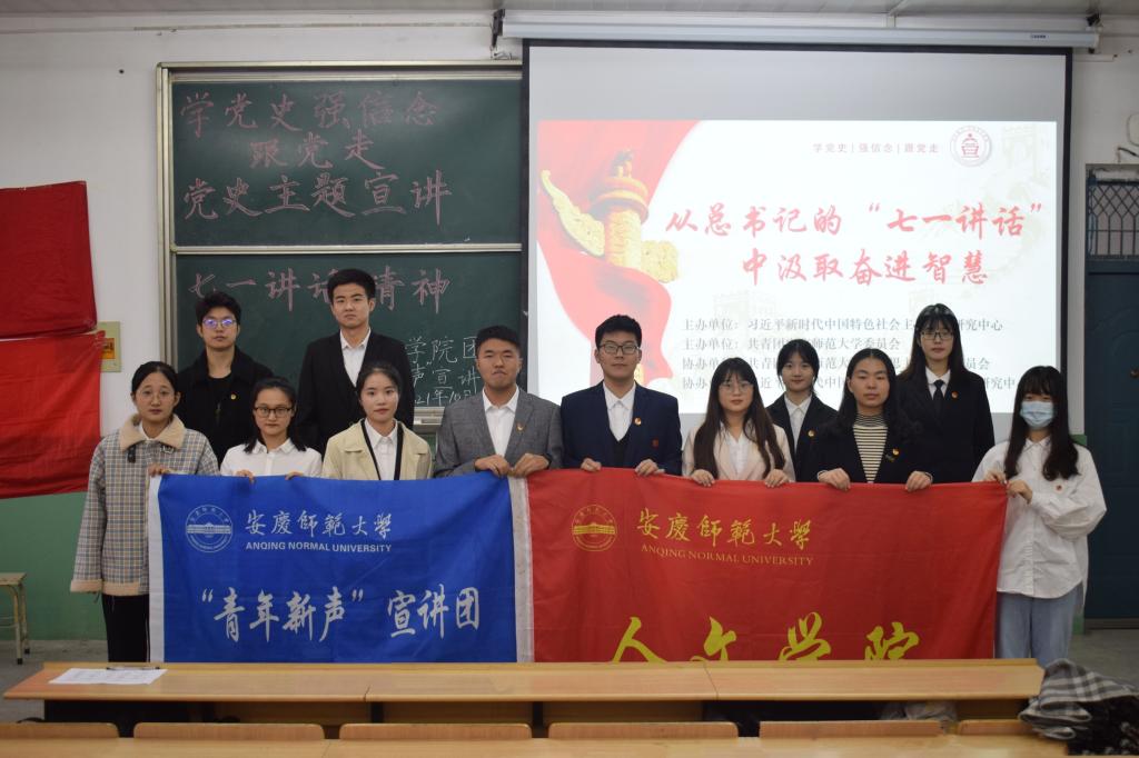 为加强党史学习教育,厚植理想信念,提高党史学习积极性,10月20日下午,校“青年新声”党史宣讲团在菱湖校区开展学习习近平总书记的“七一讲话”为主题的党史宣讲活动,Beat365中文官方网站“敬敷青年”党史宣讲团、团委学生会主要负责人、2020、2021级团员代表参与此次活动。