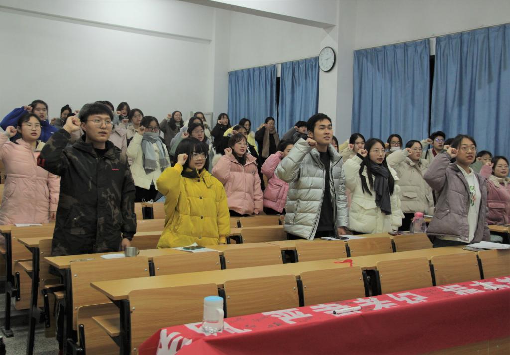随后,与会人员全体起立进行诚信考试宣誓,并在“端正考风,严肃考纪,振奋精神,考出水平”的宣传横幅上进行诚信承诺签名。