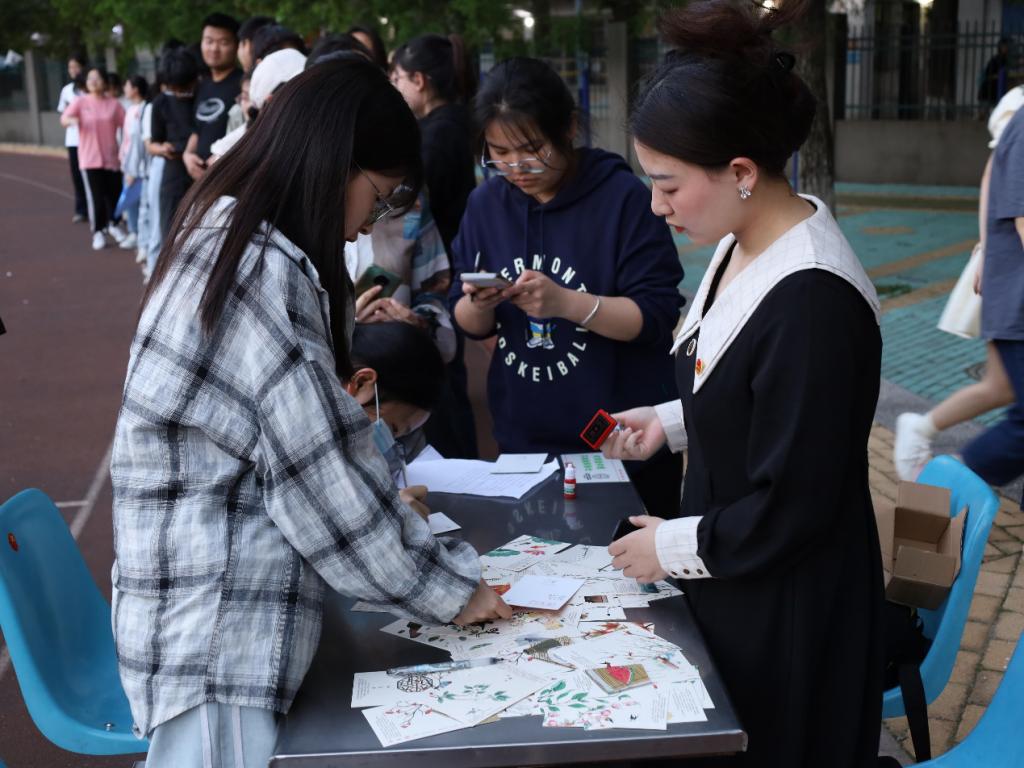 参与活动的学生们需要按照顺序来到4个站点并完成对应的任务,分别获得“觉醒”“建设”“开放”“崛起”四个专属印章后,才可以前往终点站凭借盖有四个印章的明信片参与套圈游戏,进行礼品兑换,寓意着“抵达盛世的彼岸”。