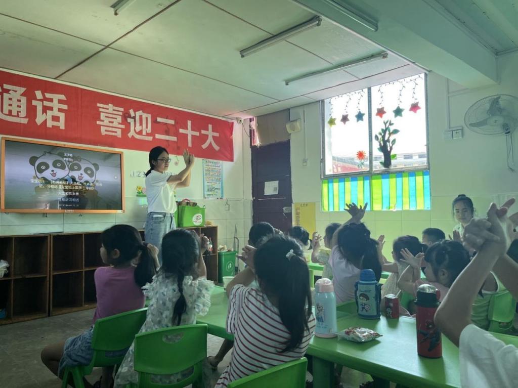 新蕾幼儿园内,八位新老师与二十多名小朋友们齐聚一堂。“人之初,性本善,性相近,习相远……”朗朗的书声响彻整个幼儿园。在老师的指导下,小朋友们纠正了《三字经》的发音,还学会了许多古诗,例如孟浩然的《春晓》。“春眠不觉晓,处处闻啼鸟……”洪亮的声音配上整齐的手势操,假期的幼儿园也是一片热闹的景象。