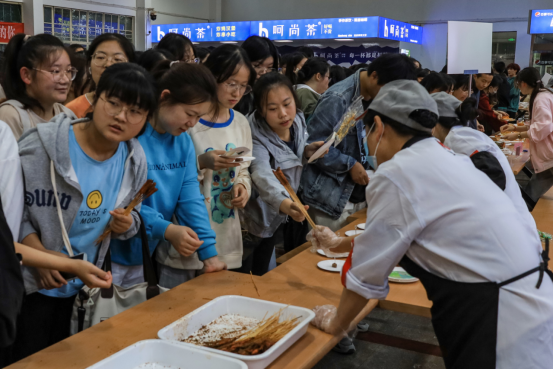 “心情真的非常的愉悦。”在排队品鉴食物的队伍中,历史学专业2021级(3)班的黄菲一边品尝着手中的烧烤,一边又加入进品尝各类中式菜肴的队伍中。
