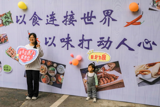 在餐厅门口,还有不少学生在“以食连接世界,以味打动人心”的展牌下拍照留念,成为一处有趣的“打卡”点。