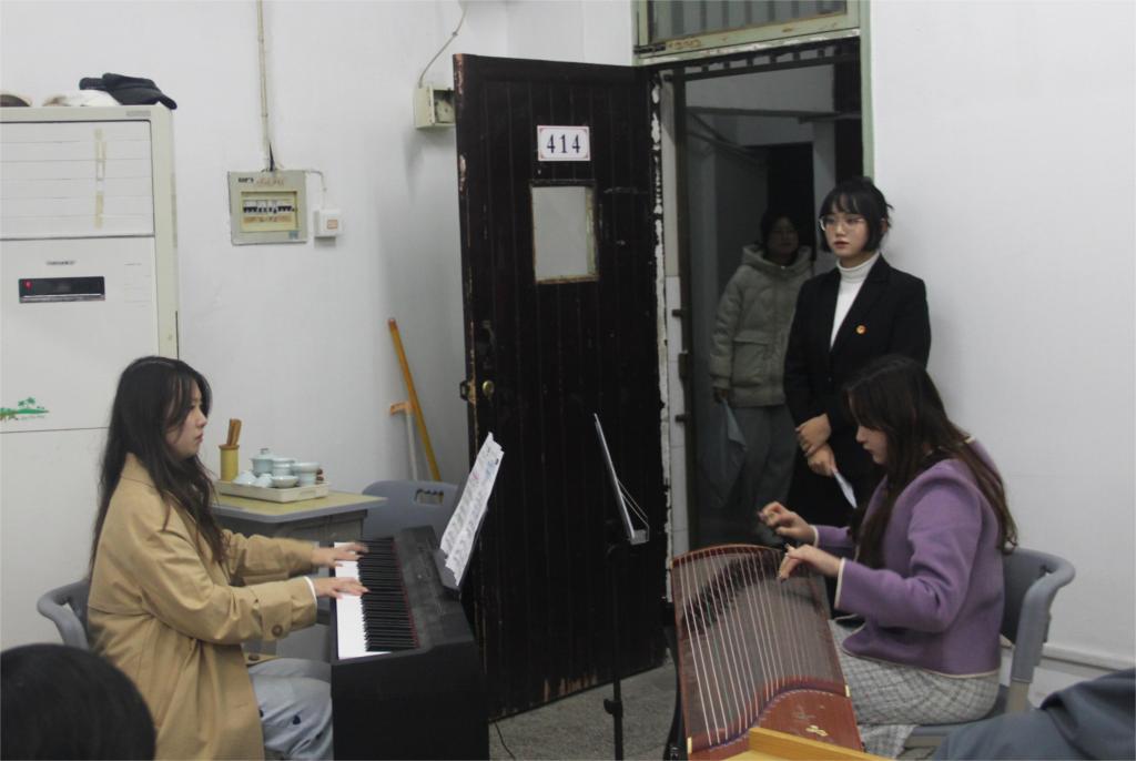 各班通过列数据、制作饼状图等方式对四六级通过率、党团活动、体测达标和评优情况进行汇报。直观具体成果展示,体现了本班在德智体美劳多方面取得的丰硕成果。而乐器表演、书法展示更是把评选现场的气氛推向高潮。其中,2021级汉语言四班的汇报展示融合了磅礴大气的钢琴和宛转悠扬的古筝乐,充分展现Beat365中文官方网站的文化专业底蕴,赢得了在场观众的阵阵掌声。