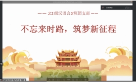 2021级汉语言文学五班团支书崔逸玮说:“‘不忘来时路,筑梦新征程’,在这一年半的时间里,我班团支部逐渐褪去当初的稚嫩与青涩,在征程上,我们不断完善支部建设、增强理论储备,不断积累经验,向着未来更好进发。”她向大家展示了扎实的基础团务,丰富多彩的特色活动,形式多样的团课和团日活动,给我们展现了一个积极向上,充满活力的团支部,班级团员充满青春朝气,为学院、为社会积极贡献青春力量。