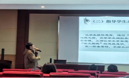 在第二阶段活动中,首先由苏家友老师进行以《随文设题命题趋势下的语文备考》为主题的专题讲座,以高考真题为依据,分析高考命题趋势,提出了拓宽文学视野、培养文学敏感力、研究命题的特点三点备考启示;回顾教材中各类题材涉及的知识点,进一步提出如何指导学生随文设题和依文解题,为在场教师提供帮助学生科学备考的策略。其次俞璐老师进行了精彩点评,对童县城老师及高莹老师的现场展示给予了高度赞扬,并在此基础上提出了在教学中可参照展示课教学模式,结合学生学情调整教学内容,以达到更好的教学效果。