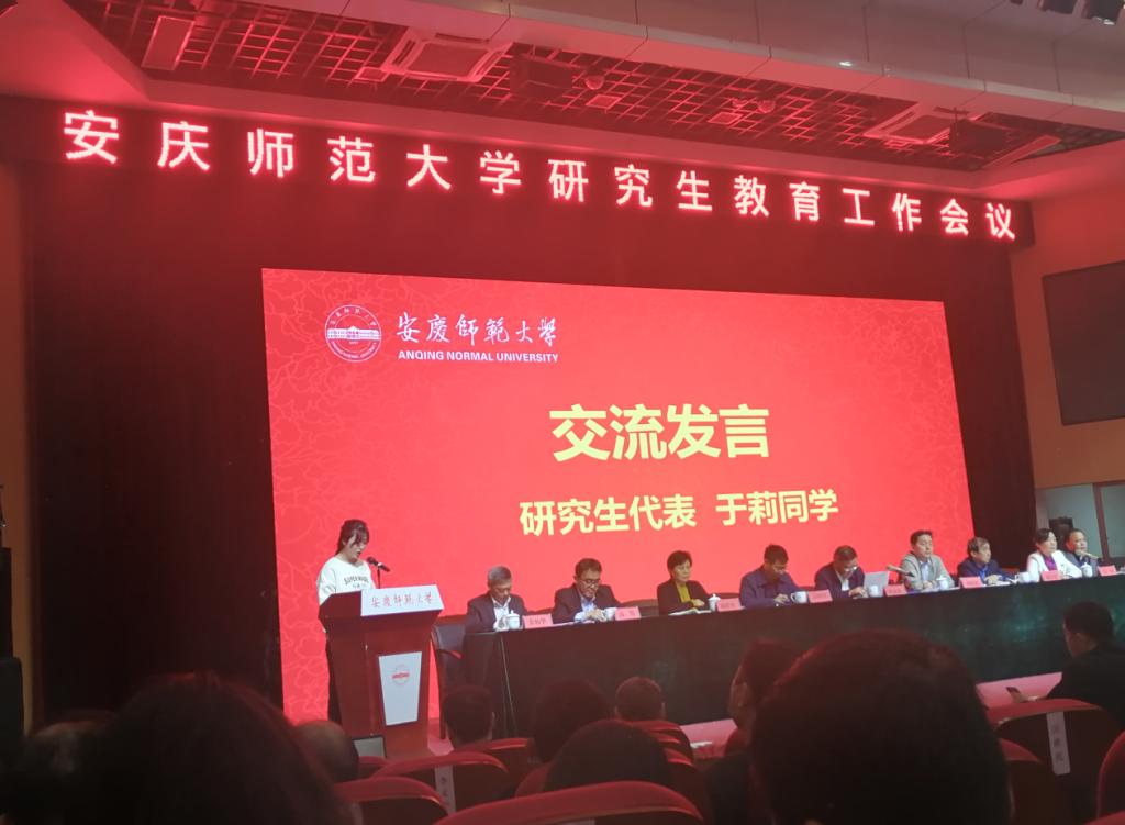 2021年4月28日下午,Beat365中文官方网站研究生教育工作会议在龙山校区图书馆东报告厅举行,我院2019级中国古代文学专业于莉同学作为研究生代表应邀在大会发言。