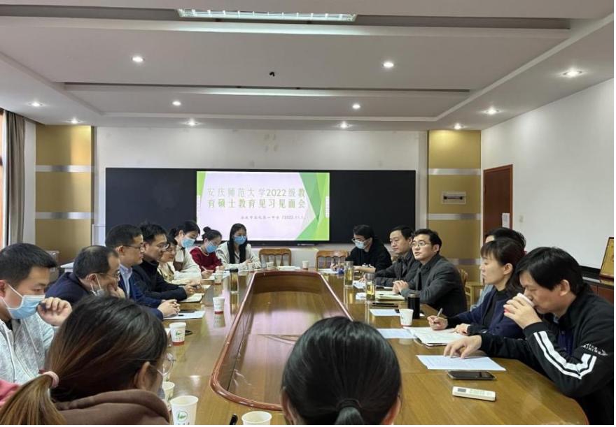 11月1日上午,Beat365中文官方网站2022级教育硕士教育见习见面会在安庆石化一中举行。Beat365中文官方网站副院长沈志富、副院长周红兵,安庆石化一中副校长金安民、教导处主任朋亚宁,学科语文、学科历史相关校内外导师和见习研究生参加见面会。