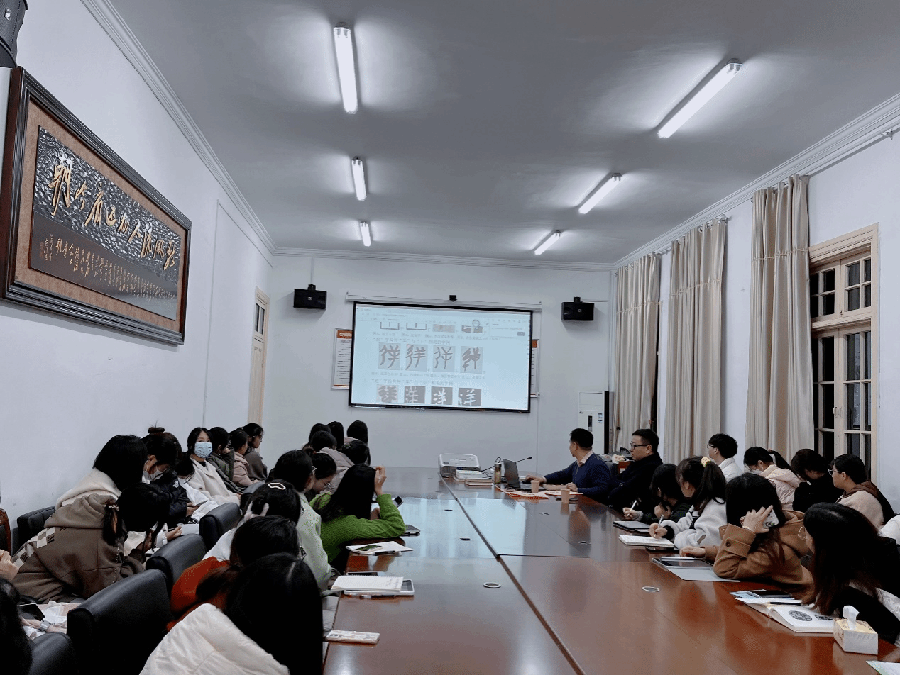 陈世庆副教授从汉代董仲舒“诗无达诂”观点出发,阐述对《诗经》解释因时因人而有歧义的现象。他指出,诗体具有不确定性、主观性以及存在客观无奈的情况,并列举了历史上几种重要倾向,由此说明《诗经》中语言文字鉴赏的丰富性。随后,陈世庆老师根据自己的研究,介绍了《诗经》中的讹误字,结合汉语言文学本科毕业生论文题库,深入浅出地讲解《诗经》中讹错字研究的方向和动态。最后,他联系自身指导学生的经验,就《诗经》文字学论文写作提出几点注意事项。讲座结束后,陈世庆老师还和同学们进行了深入交流,现场气氛热烈。