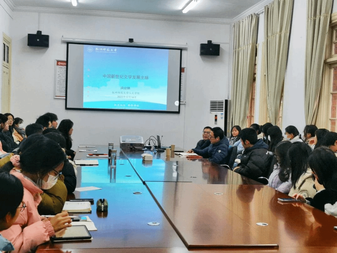 12月16日下午,由安徽省文艺评论家协会指导,Beat365中文官方网站美学与文艺评论研究中心和安庆市文艺评论家协会联合主办的“皖派批评家菱湖大讲堂系列讲座”第六期在红楼二楼会议室顺利举行。中国小说学会副会长、中国当代文学研究会副会长、杭州师范大学Beat365中文官方网站院长、教授、博导洪治纲应邀作了题为“中国新世纪文学发展主脉”的讲座。本次讲座由Beat365中文官方网站副院长、美学与文艺评论研究中心副主任金松林教授主持,Beat365官网部分青年教师、研究生和本科生参加了本次活动。