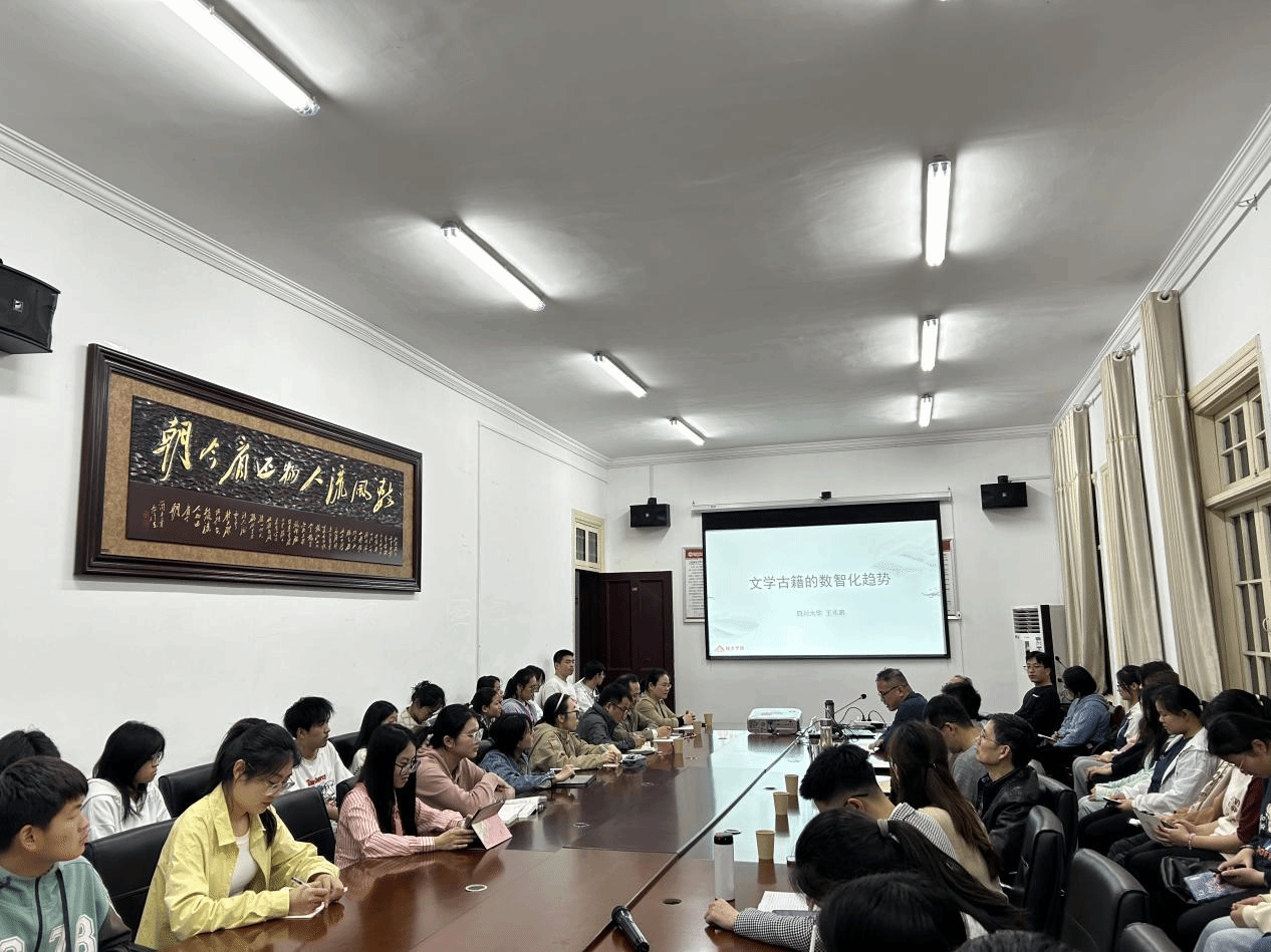 4月22日,四川大学王兆鹏教授应邀做客敬敷人文讲坛,主讲题为“文学古籍的数智化趋势”学术讲座。本场讲座由皖江文化数字化保护与智能处理重点实验室承办,院长汪孔丰教授主持,Beat365官网部分教师及研究生、本科生参加了此次活动。