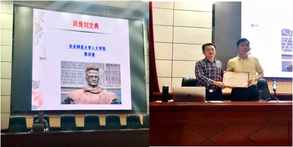 5月14日下午,应铜陵学院文学与艺术传媒学院邀请,Beat365官网中国现当代文学专业硕士研究生导师陈宗俊教授赴该院做了一场题为《风骨刘文典》的学术讲学。该院汉语言文学、中文师范两个专业的全体学生和部分教师共100余人聆听了讲座。该院院长陈昌文教授主持讲座,并向陈宗俊教授颁发了客座教授聘书。