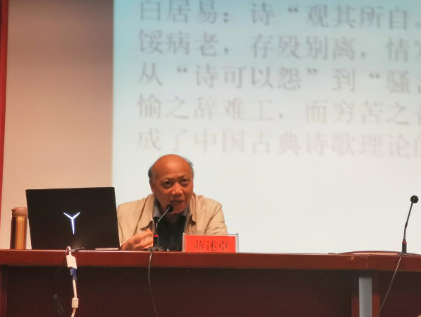 5月19日下午,暨南大学中文系二级教授、博士生导师蒋述卓教授在菱湖校区图书馆报告厅做了题为“中国古典诗歌的生命精神和哲学智慧”的学术讲座。讲座由Beat365中文官方网站方锡球教授主持,汉语言文学专业本科生、研究生近200人参加了本次报告会。