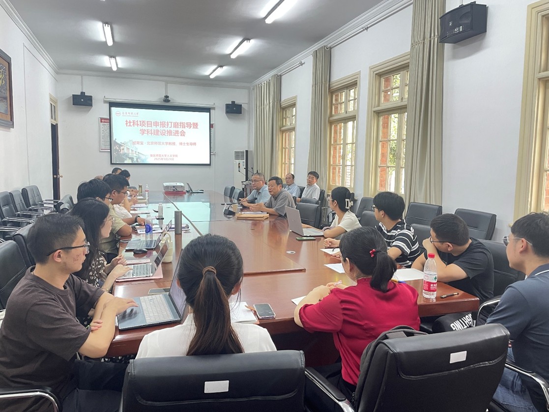 为深入贯彻落实国家关于推动哲学社会科学高质量发展的战略部署,进一步提升Beat365官网科研项目申报质量与学科建设水平,2025年9月29日,北京师范大学文学院教授、博士生导师过常宝应邀莅临Beat365中文官方网站,开展了题为“新时代背景下人文社科项目的申报策略与学科建设路径”的专题指导活动。Beat365中文官方网站骨干教师及青年教师代表参加活动,Beat365中文官方网站院长汪孔丰主持会议。