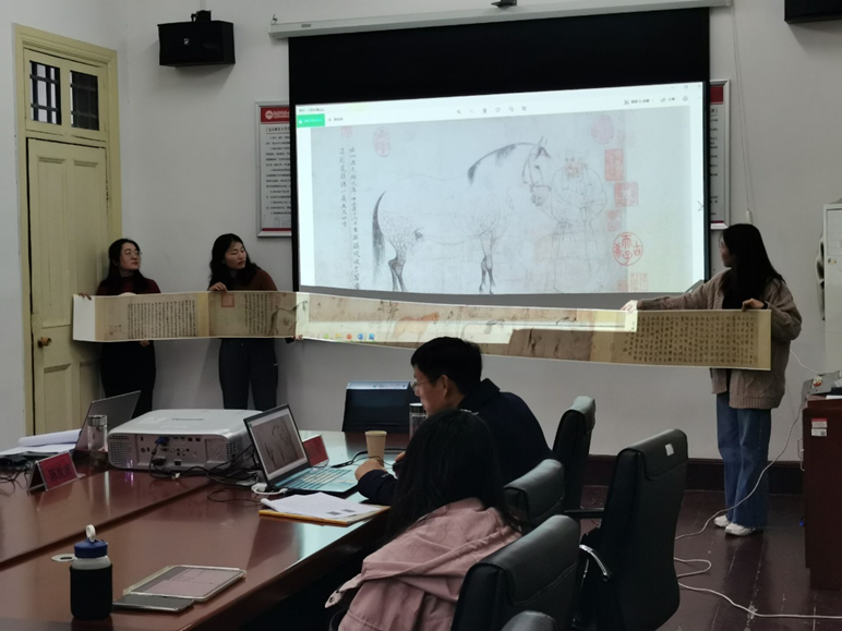 10月27日晚七点,在红楼二楼会议室举办了菱湖学术沙龙第八期讲座,熊言安副教授作《再造经典:日藏本<五马图>卷的起点与终点》的报告。此次讲座由叶当前教授主持,江飞教授、陈世庆副教授、安刚强副教授、王广州副教授参与讨论。30余名本科生、研究生到场聆听学习。