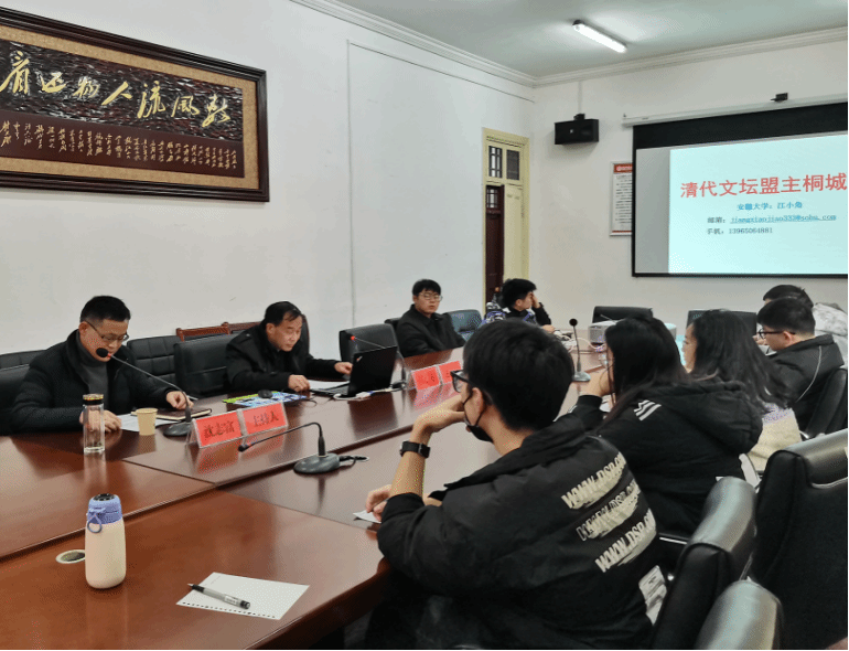 2023年2月22日上午,敬敷人文讲坛第二十八讲在红楼会议室成功举行。安徽大学历史学院教授、桐城派研究中心主任、博士生导师江小角应邀作了题为“清代文坛盟主桐城派”的学术讲座。讲座由沈志富副院长主持,中国史、中国古代文学学科研究生和部分本科生聆听讲座并参与交流。