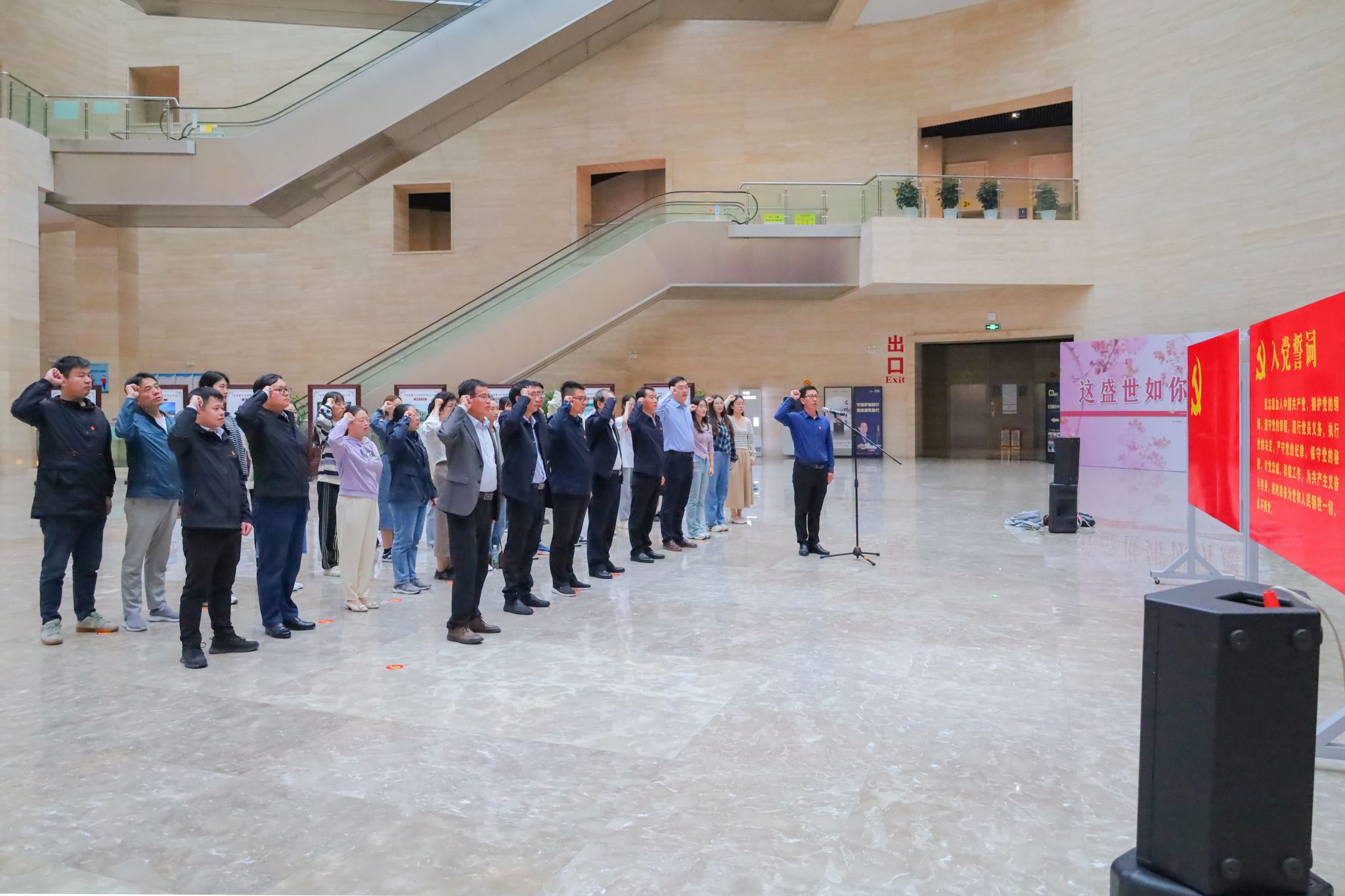 参观结束后,全体成员面向党旗,重温了入党誓词。
