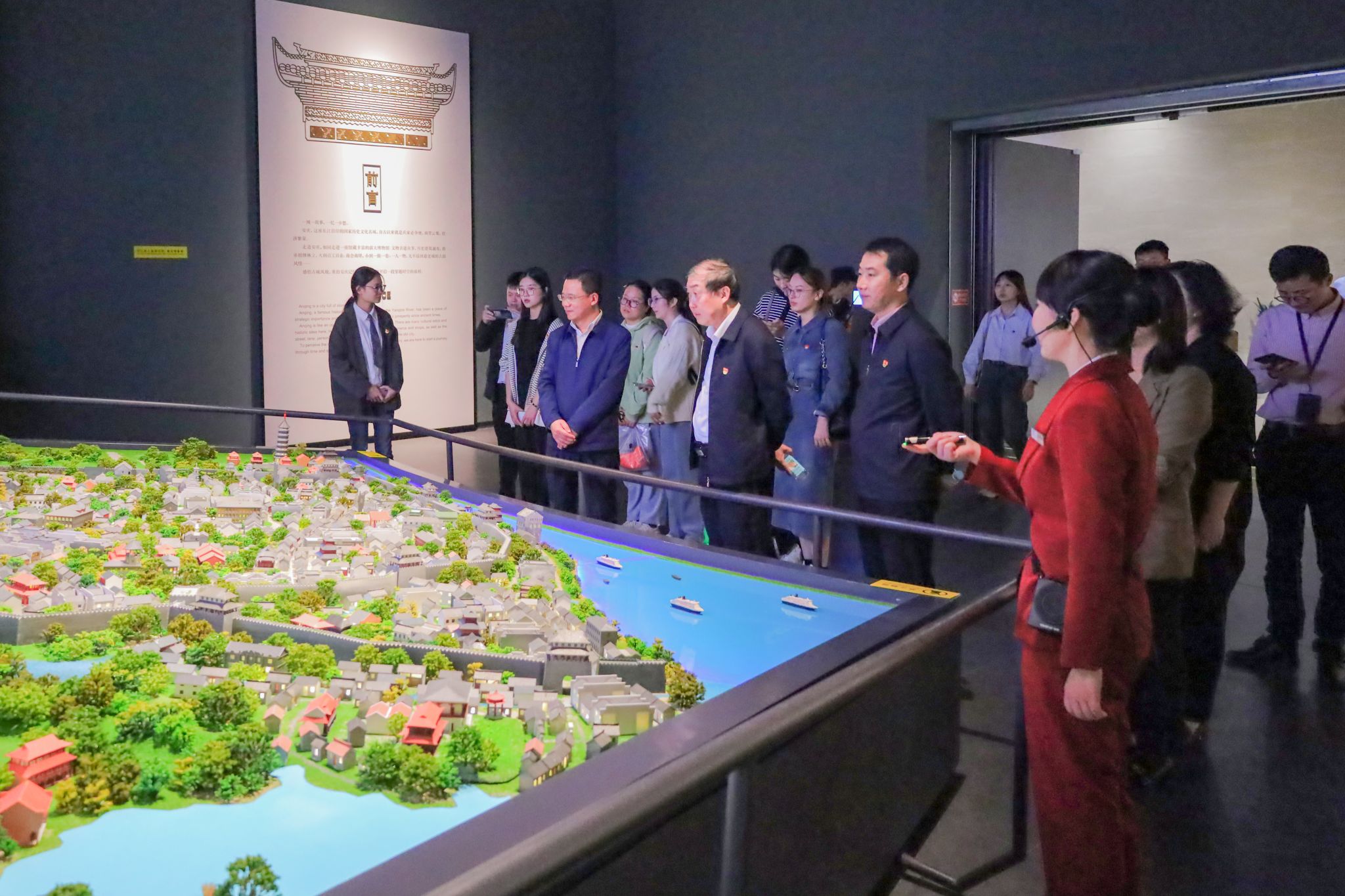 “安庆是一座国家级历史文化名城,自古以来都是南北交流的重要通道。”在讲解员的带领下,全体成员参观了安庆博物馆。该馆内设8个主题展厅和2个临展厅,其以安庆古代文明陈列、安庆近代文明陈列、黄梅戏艺术陈列、安庆城市记忆为主线,运用图文、影像等展示手法,并结合人物塑像、文物陈列、场景模型等集中展示了安庆波澜壮阔的发展历程,增强了全体成员的归属感与历史责任感。