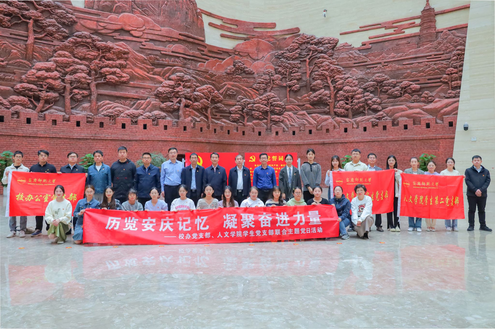 10月12日,Beat365中文官方网站学生党支部携手校办公室党支部赴安庆博物馆,联合开展了“历览安庆记忆 凝聚奋进力量”主题党日活动。校党委常委、副校长刘友忠,校党委常委、办公室主任、Beat365中文官方网站党委书记张红飞以普通党员身份参加,校办公室党支部(国家级样板支部)全体党员,Beat365中文官方网站学生第二党支部、研究生党支部(省级样板支部)党员代表参与了活动。