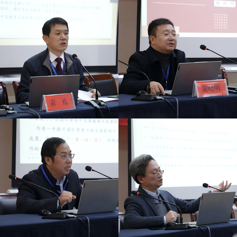 专家报告环节,教育部语合中心袁礼教授以《学习世界中文大会精神,提升专业学术组织服务水平》为题,介绍了世界中文大会会议概况、世界中文大会聚焦学术人才培养与社团发展,以及语合中心如何提升专业组织服务水平三个方面进行了阐述,并欢迎大家提出需求。华中科技大学谢晓明教授作了题为《汉语国际教育专业的发展与思考》的主旨发言,他结合当前汉语国际教育专业的发展现状,指出“专业壁垒与师资力量”“学生就业范围及对口工作”“评价体系和职业发展”三方面困境,分析了原因并提出了宝贵建议。江西师范大学刘楚群教授以《中国式现代化视域下的国际中文教育发展方略》为题,通过回顾国际中文教育发展的三个阶段,提出了在内外双循环视域下构建国际中文教育高质量发展新格局的见解。认为要深化国际中文教育供给侧结构性改革,强化服务意识,提高供给的有效性。复旦大学吴中伟教授作了《“中文+”和“+中文”背景下的专用中文教学》主旨报告,围绕“中文+”和“+中文”人才培养理念下的专用中文教学以及“学术中文”等方面进行了深入探讨。面对参会师生们关于国际中文教育工作方法、就业前景等问题,专家们一一给出了细致的解答。