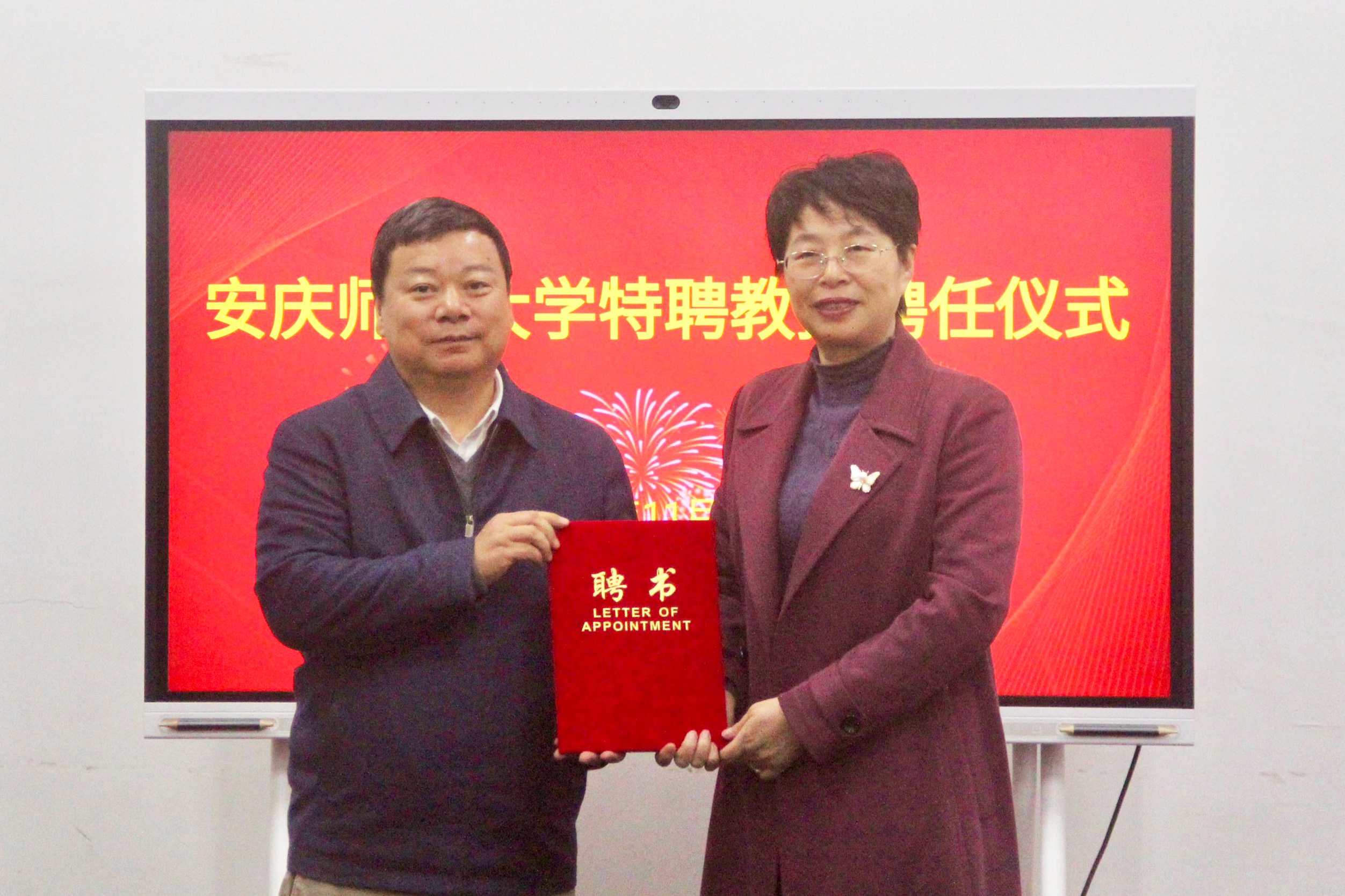 彭凤莲为过常宝颁发了聘书。徐晓宁主持聘任仪式,并介绍了过常宝的履历。