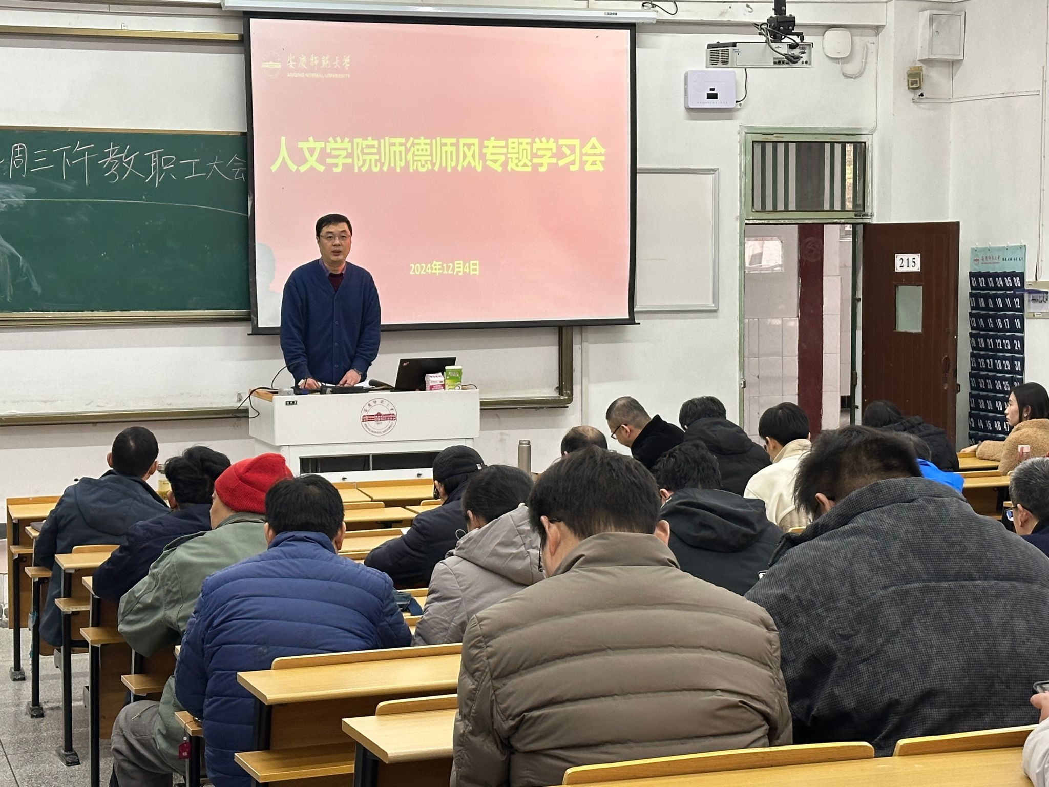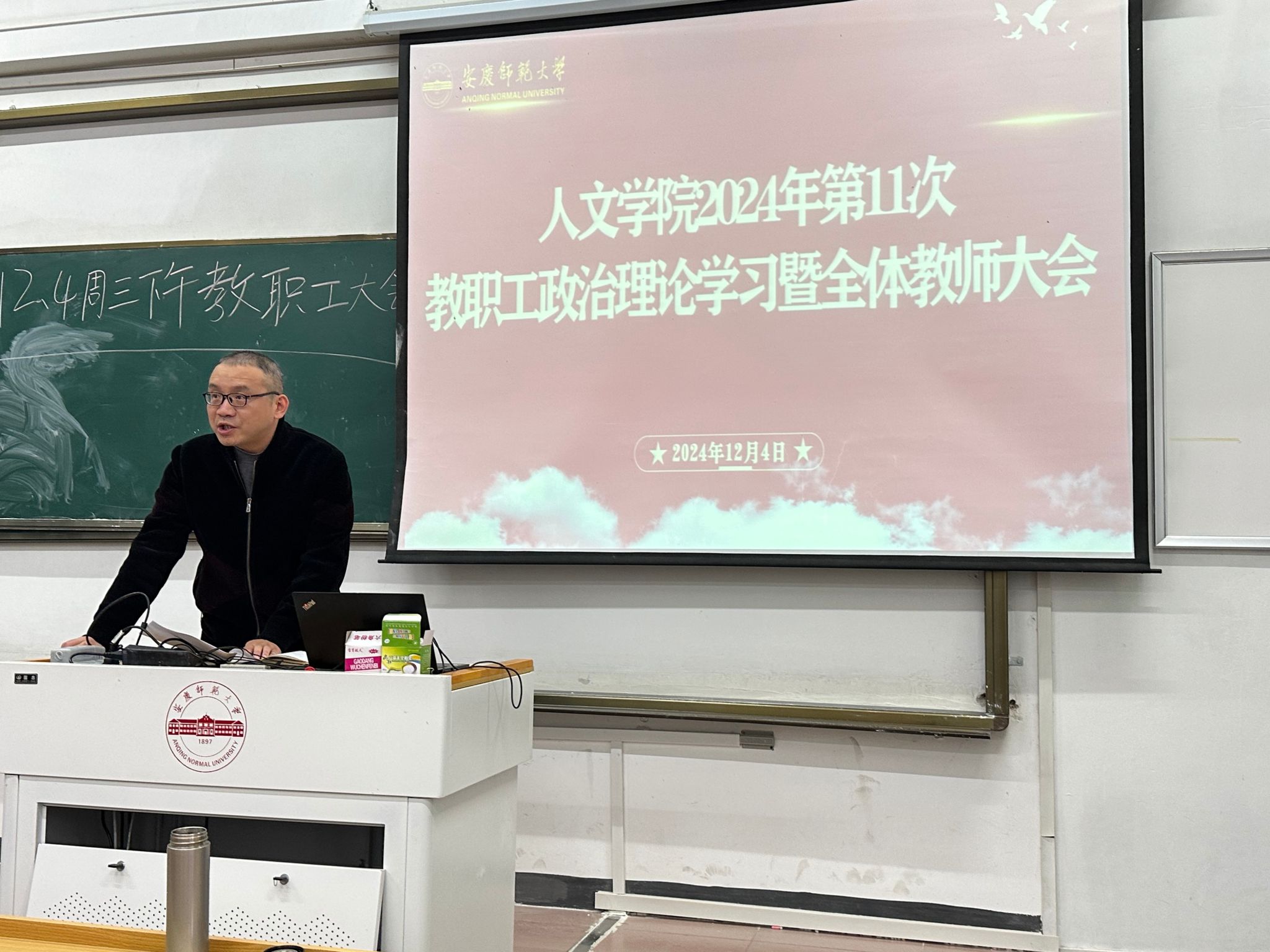 12月4日,Beat365中文官方网站召开2024年第11次教职工政治理论学习会暨全体教师大会。院长汪孔丰主持会议,学院领导班子,全体教职工参加会议。