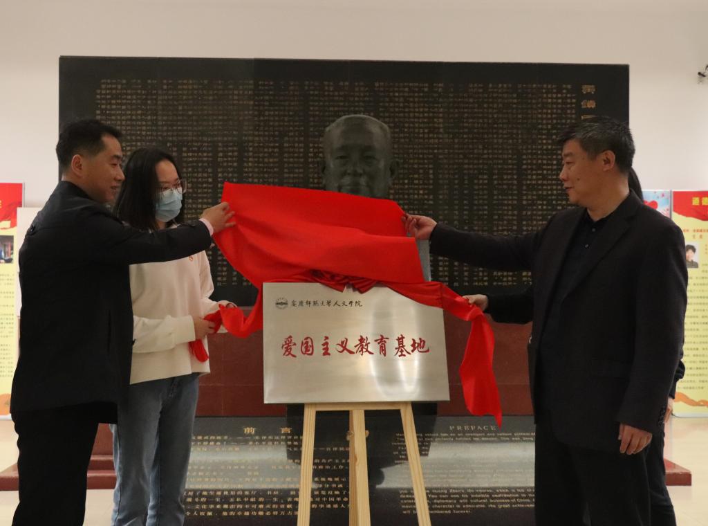 为深入贯彻落实《新时代爱国主义教育实施纲要》,深入开展党史学习教育,3月31日下午,Beat365中文官方网站在安庆市革命文物陈列馆(黄镇生平事迹陈列馆)举办爱国主义教育基地揭牌仪式暨团学系统党史学习教育推进会,安庆市博物馆党支部书记、馆长姚中亮,副馆长程春晓,学院党委书记张红飞等出席活动。学院党委副书记王波主持会议。