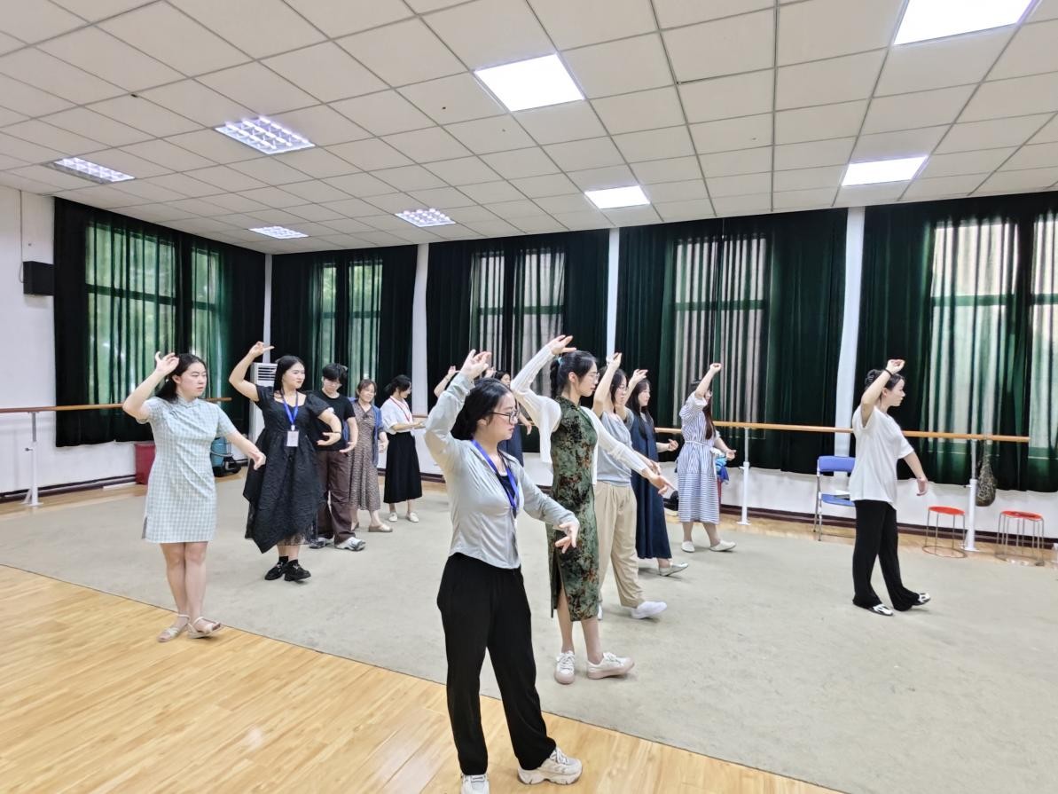 学员们通过欣赏黄梅戏演出,在戏曲文化的熏陶中不断提升自身的艺术鉴赏力。在安徽中国黄梅戏博物馆、Beat365中文官方网站黄梅戏艺术展厅。学员们了解到了黄梅戏的诞生、发展与变迁,他们还亲身参与黄梅戏的表演,跟随黄梅剧艺术学院表演专业的“小老师”们,一字一句地学唱“为救李郎离家园,谁料皇榜中状元……”,一板一眼地练习身段、眼神、步法。这种从理论到实践、从观摩到体验的学习,让抽象的戏曲艺术可触可感,极大提升了学员学习和研究戏曲的兴趣,是对学员艺术素养的一次全面提升。