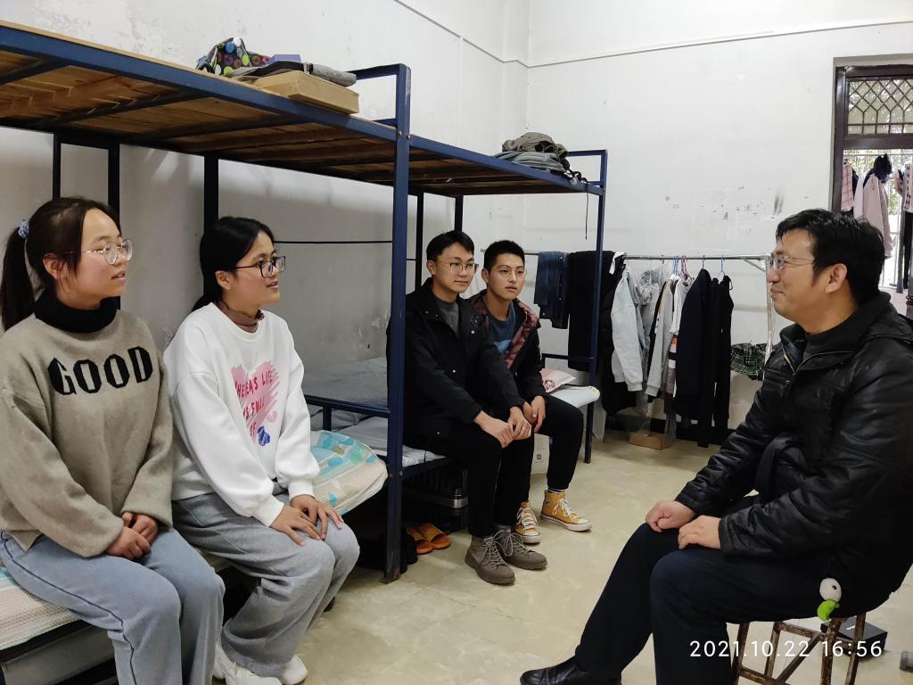 调研期间,叶当前、何池友两位老师走访实习生宿舍,查看同学们住宿条件,并对同学们在教学工作中存在的疑惑和问题进行解答指导。