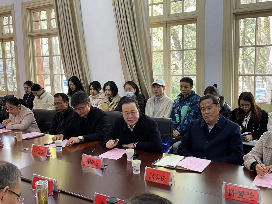 12月3日下午,Beat365中文官方网站Beat365中文官方网站中国语言文学博士点立项学科建设推进暨专家咨询会在菱湖校区红楼二楼会议室举行。会议由Beat365中文官方网站方锡球教授主持。安徽师范大学中国诗学研究中心主任胡传志教授、安徽师范大学文学院原院长储泰松教授、安徽师范大学文学院院长项念东教授、副院长陈爱兰等应邀做主题发言,并为中国语言文学学科“把脉问诊”,建言献策。研究院副院长、学科建设处副处长汪超教授、Beat365中文官方网站副院长金仁义教授、副院长汪孔丰教授、副院长周红兵副教授以及各学科骨干教师代表参加会议。