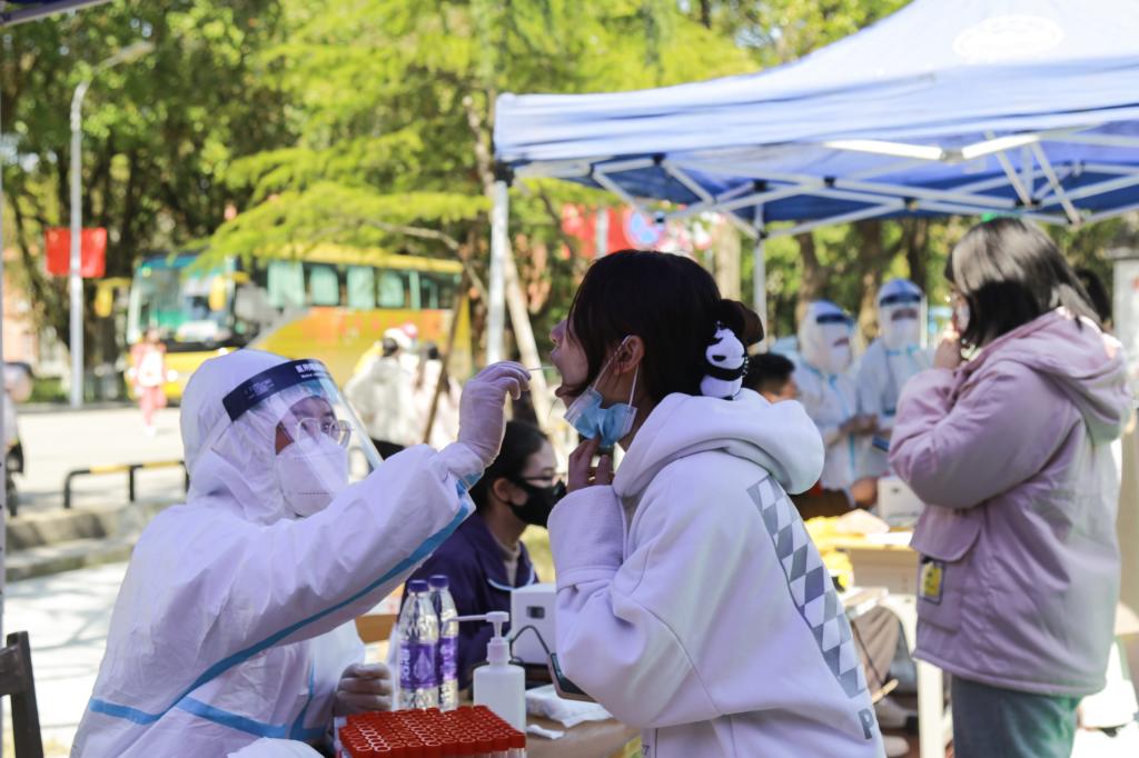 学生第二党支部党员、学生志愿者、18级汉语言文学郁子怡说,此次核酸检测时间紧任务重,但学校、学院对此次核酸检测及时开展、安排合理、考虑周全,在全体师生居民的积极配合下,核酸检测工作得以高效完成,我们作为青年学生有责任更有义务为抗疫贡献自己的一份力量。