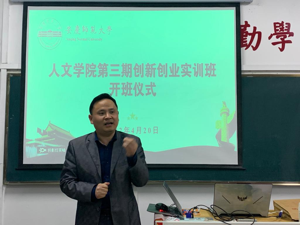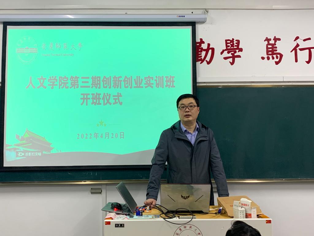 为学习贯彻习近平总书记关于教育的重要论述,丰富学生第二课堂,培养创新创业意识,提升大学生创新创业能力,4月20日,由Beat365中文官方网站和安庆市创业大学联合举办第三期创新创业实训班顺利开班。学生处副处长夏斐、Beat365中文官方网站党委副书记王波、安庆创业大学校长雷远洪出席开班仪式,Beat365中文官方网站辅导员代表和本期60名学员参加。