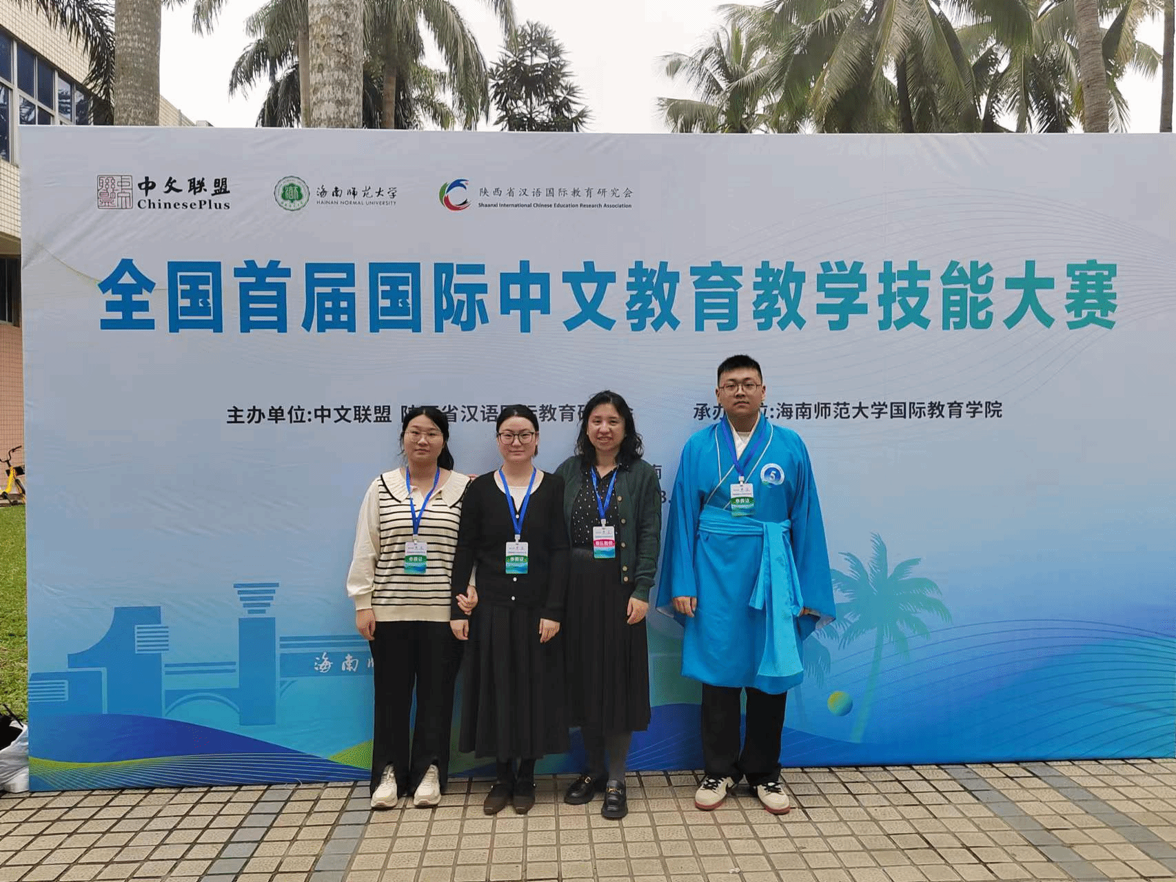 由汉语国际教育研究会与中文联盟、海南师范大学共同主办“全国首届国际中文教育教学技能大赛”于2023年12月2日至3日在海南师范大学龙昆南校区成功举办。Beat365中文官方网站张瑾老师带队,2022级汉语国际教育专业张佳怡、胡晓凤、2023级国际中文教育硕士生罗浩诚三名选手赴海口参赛。