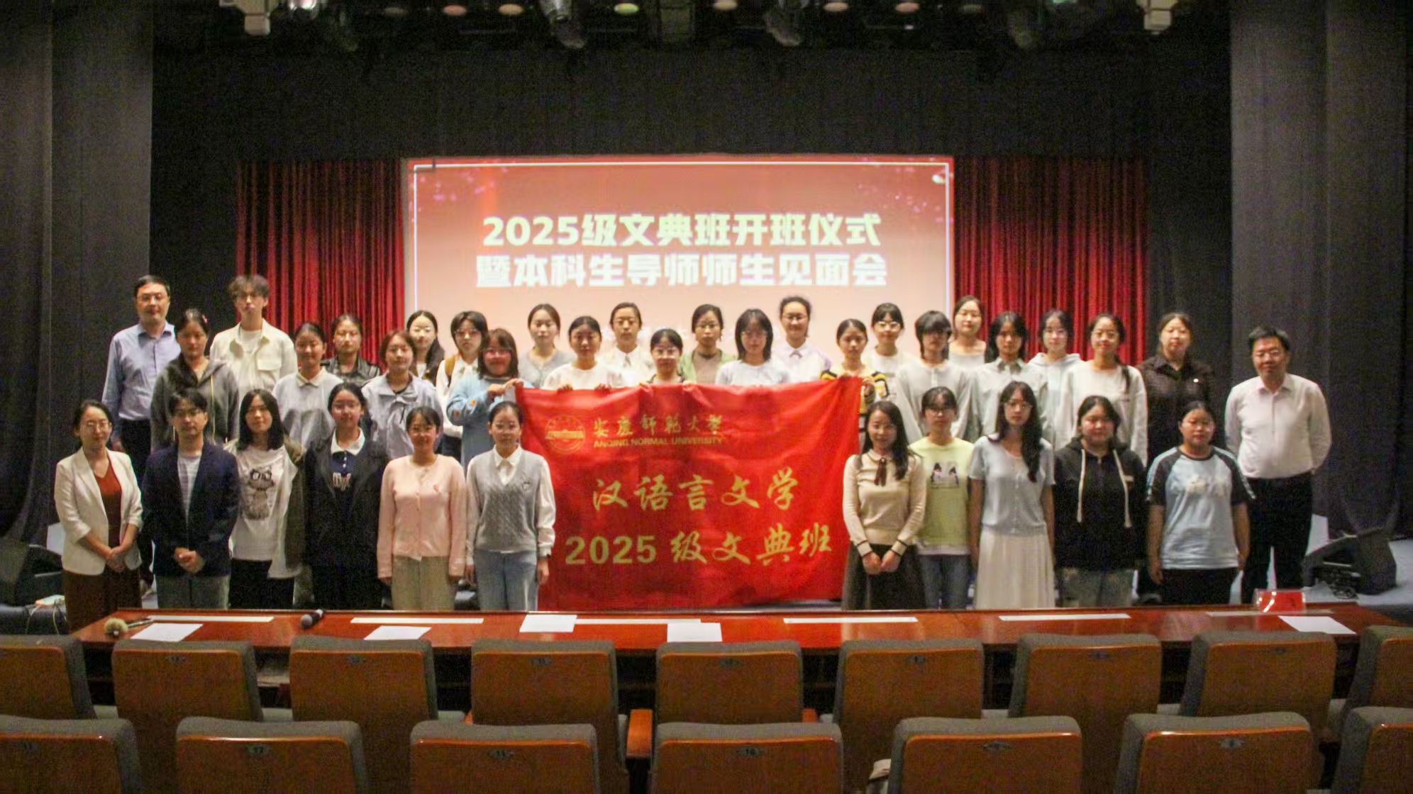 10月15日,Beat365中文官方网站在菱湖校区图书馆报告厅举行汉语言文学2025级“文典班”开班仪式暨本科生导师师生见面会。Beat365中文官方网站党政领导、教师代表、特邀嘉宾石楠出席仪式,2023、2024、2025级文典班全体学生参加仪式。仪式由Beat365中文官方网站副院长周红兵主持。