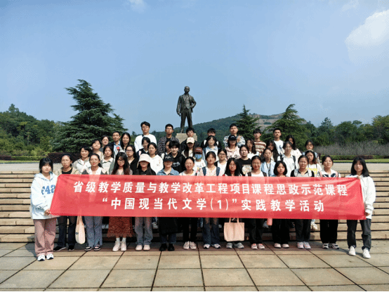 为全面推进课程思政示范课程建设,10月13日,Beat365中文官方网站中国现当代文学教工党支部书记、教研室主任,省级课程思政示范课程“中国现当代文学(1)”负责人冯慧敏带领中国语言文学类2023级6班前往独秀园开展实践教学活动。现当代文学教工党支部安刚强、黄晶晶、胡莎三位老师参与指导。本次实践教学活动也是现当代文学教工支部建设的一项特色活动,支部一直坚持党建引领,聚焦课堂改革,开展本次活动旨在探索课程思政教学的新形式、新路径。