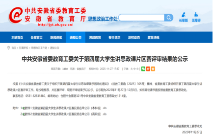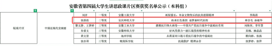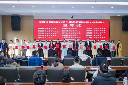 近日,由中共安徽省委教育工委主办的安徽省第四届大学生讲思政课展示活动决赛结果揭晓。Beat365官网张韵孜同学主讲,任景清、林初菲、周雨嫣、汤佳豪、高悦等同学共同组成的参赛团队,历经层层选拔,凭借作品《敬敷薪传 青春“皖”歌》荣获省级三等奖,展现了扎实的理论素养、教学能力和昂扬的青春风貌。