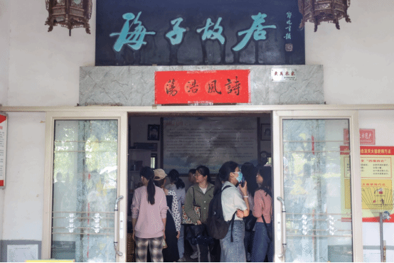 “五岁的黎明,五岁的马,你面朝江水,坐下……可能是姻缘,也可能是友情。”在本次实践教学的第一站——海子故居及其纪念馆,Beat365中文官方网站学子在海子故居门前的广场上,齐声朗诵了海子的诗歌《给安庆》。海子原名查海生,是当代著名诗人,在他短暂的一生中,共创作了近200万字的作品。海子的故居是一座简朴的小瓦房,屋内悬挂有海子的照片,并保留着海子书房。其中一本记录来访者留言的笔记本上,记录了许多当代诗人对海子的赞美和怀念。在故居旁的海子纪念馆中,陈列有海子的生前遗物,完整呈现了海子一生的经历,展示了他各个时期所创作的诗歌作品。师生们低吟着海子的诗句,回顾了他短暂而又灿烂的一生。对海子故居的调研之行实现了让书中人物“活过来”,有利于增强人文学子对所学专业的感性认识,提升专业认知水平。